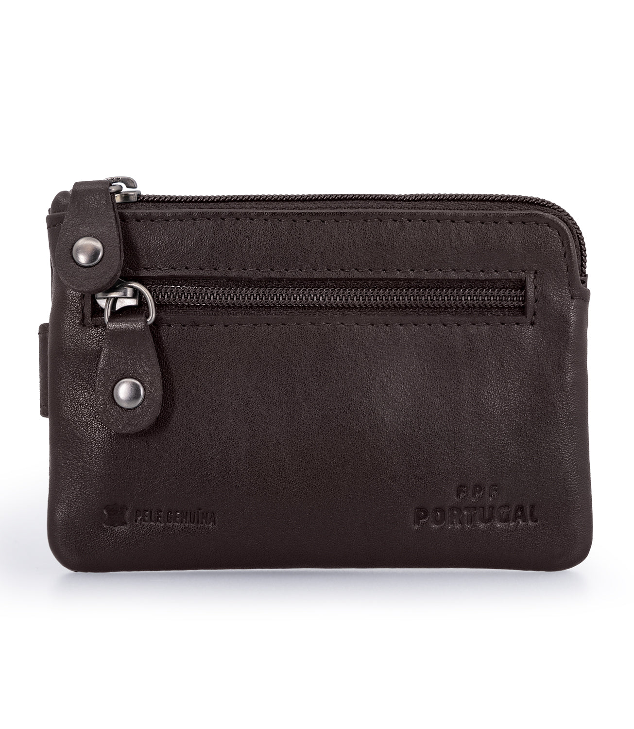 Moedeiro com porta-chaves em pele genuína com gravado FPF.