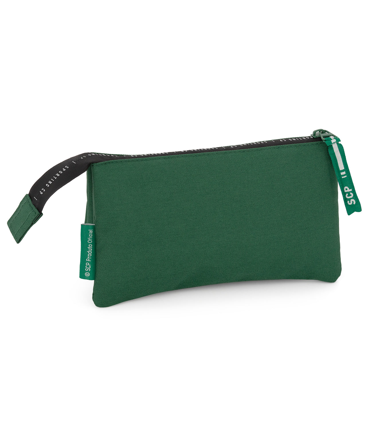 Estojo de lápis oficial do Sporting CP. Perfeito para organizar os seus materiais escolares e de desenho. Fabricado em poliéster verde de alta qualidade, este estojo é resistente e prático.