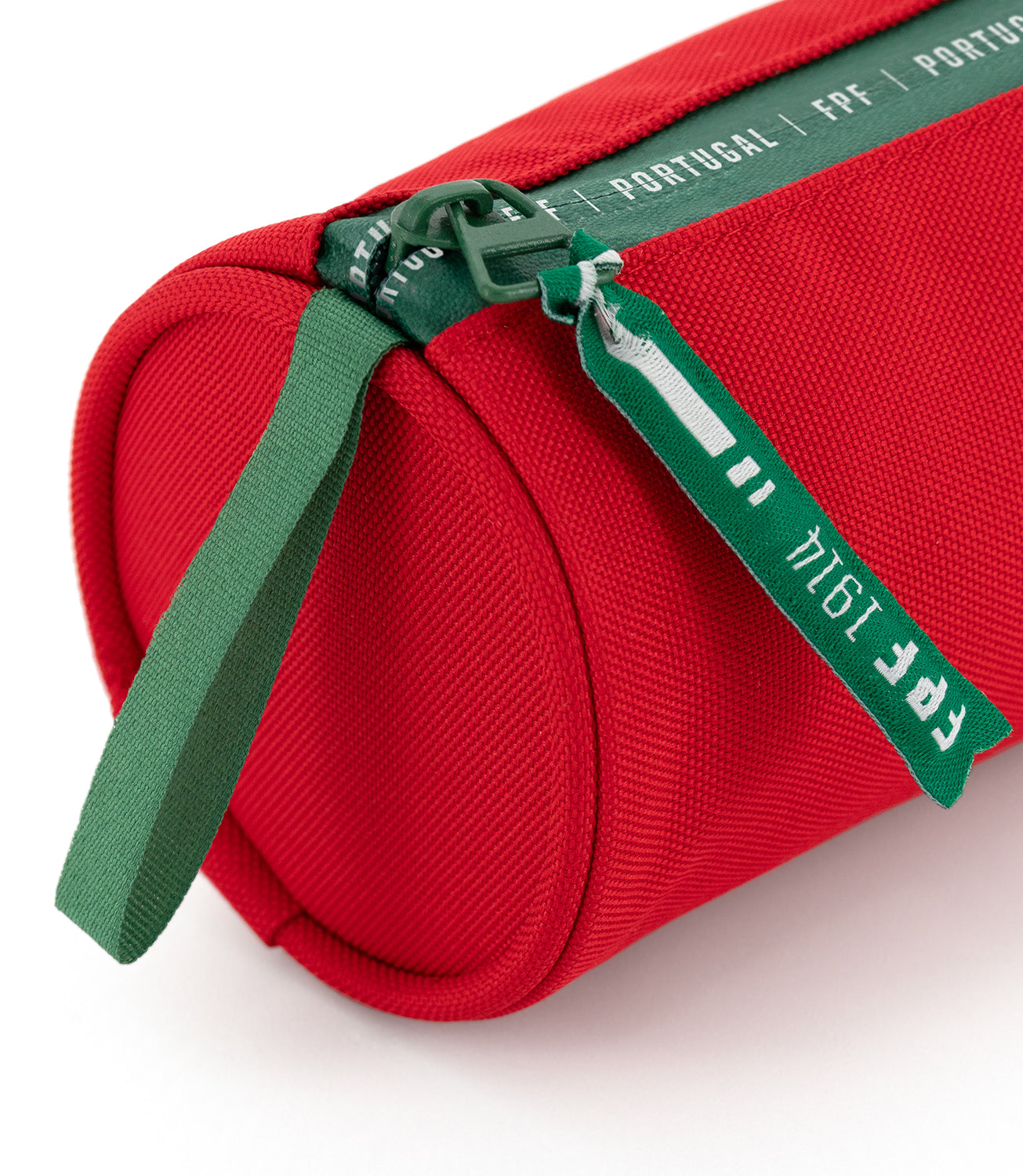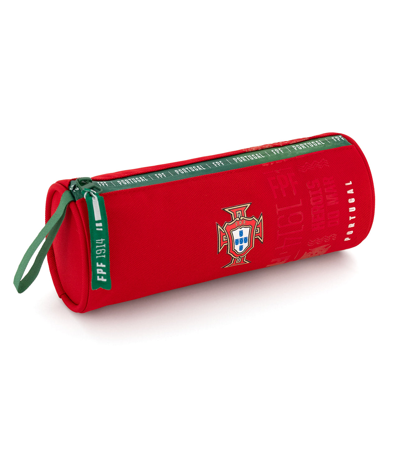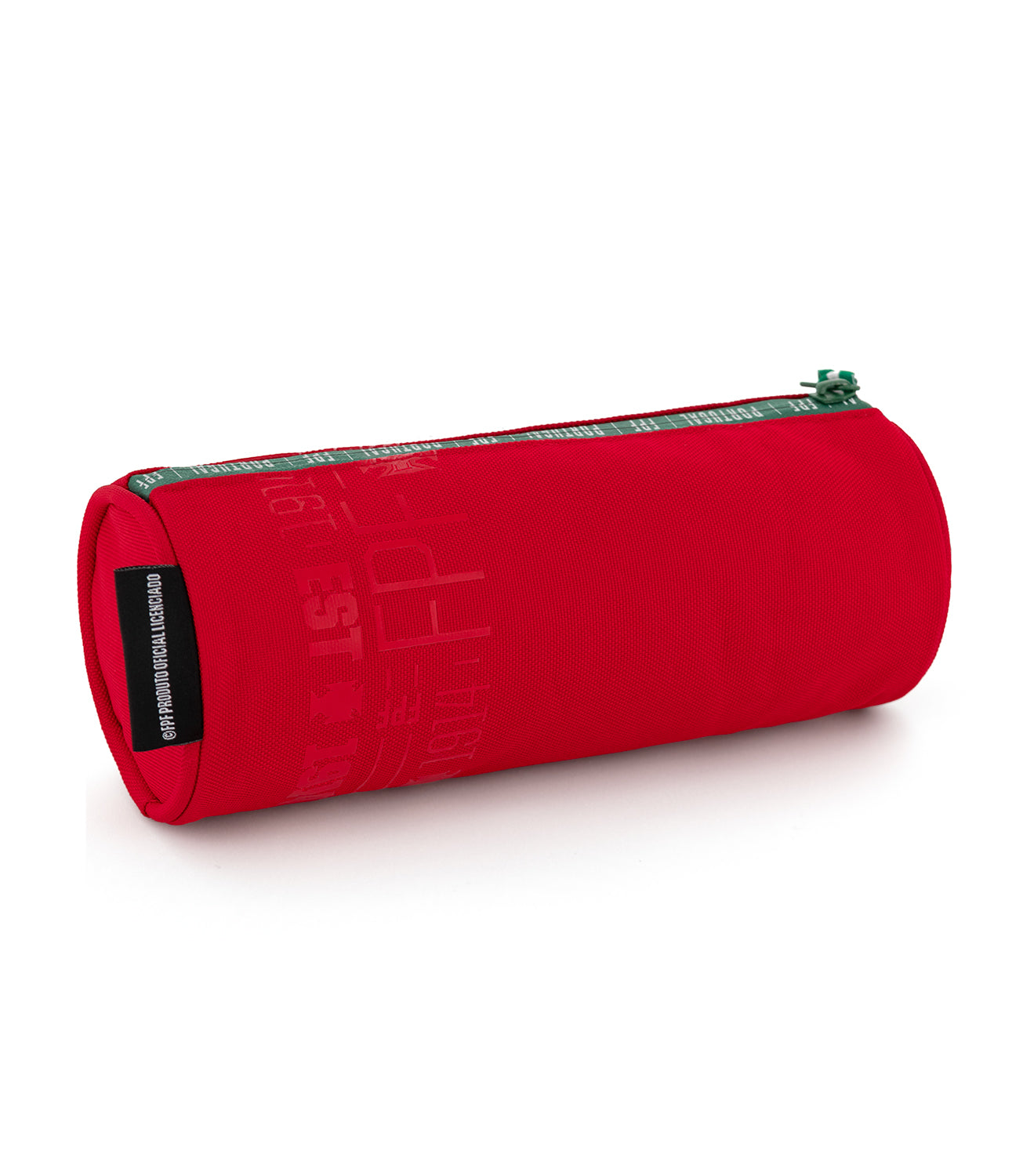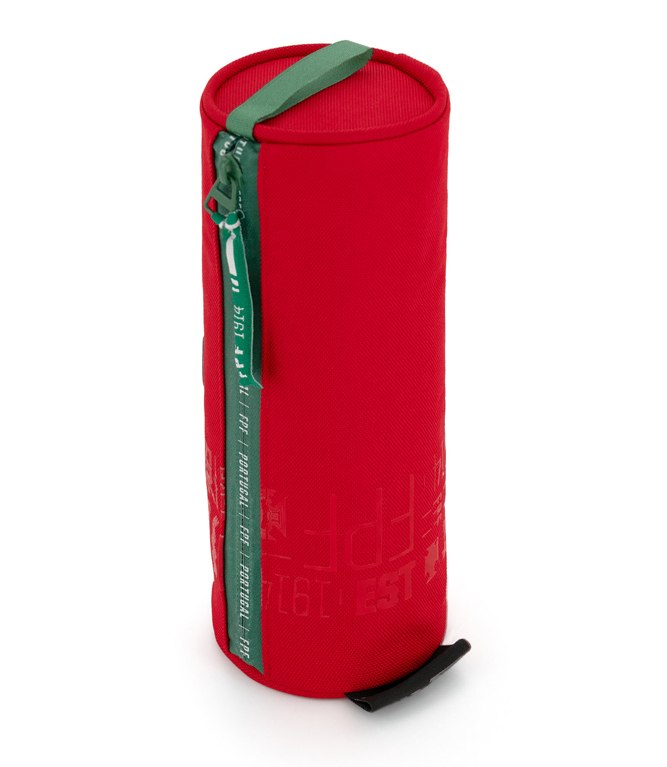 Estojo redondo Federação Portuguesa de Futebol em poliéster vermelho resistente, com um design compacto e prático. Inclui uma alça em precinta. Fecho frontal com lettering Federação Portuguesa de Futebol e precintas robustas.