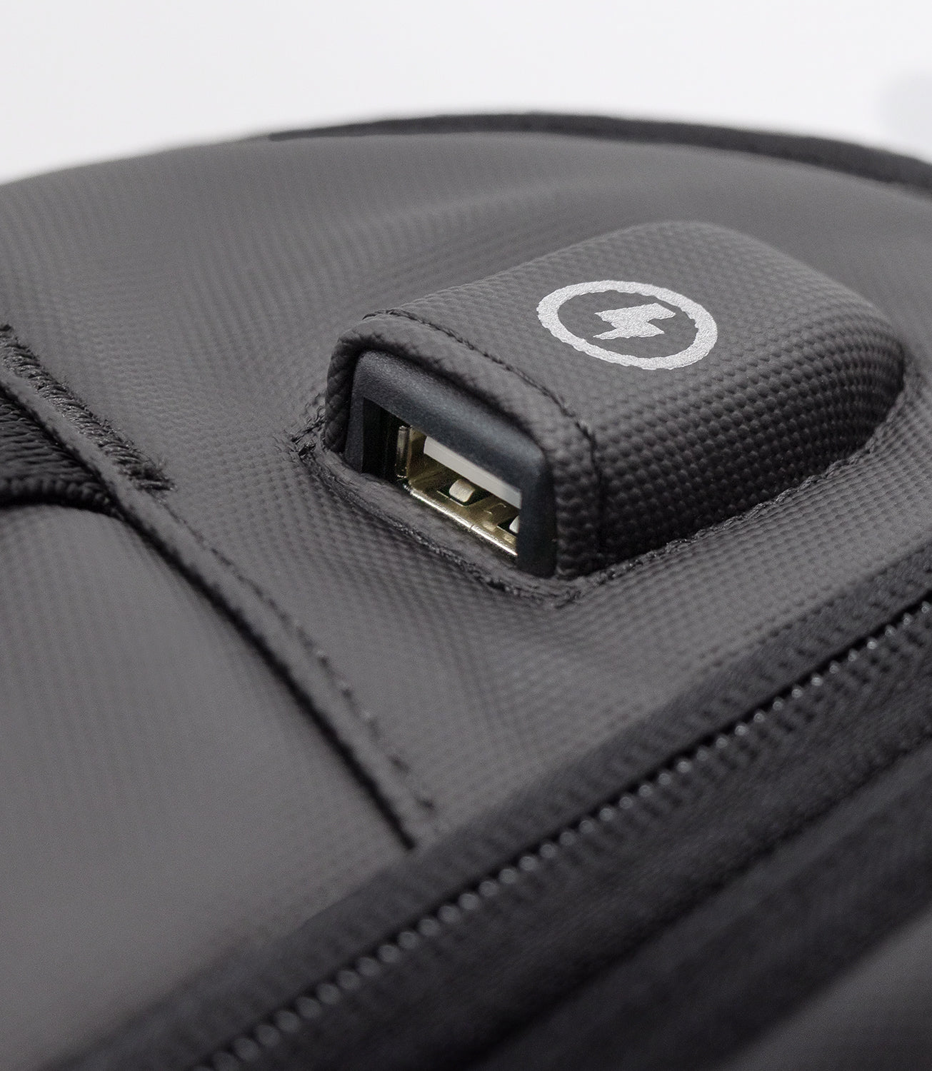 USB input with connection to powerbank compartment (not included).