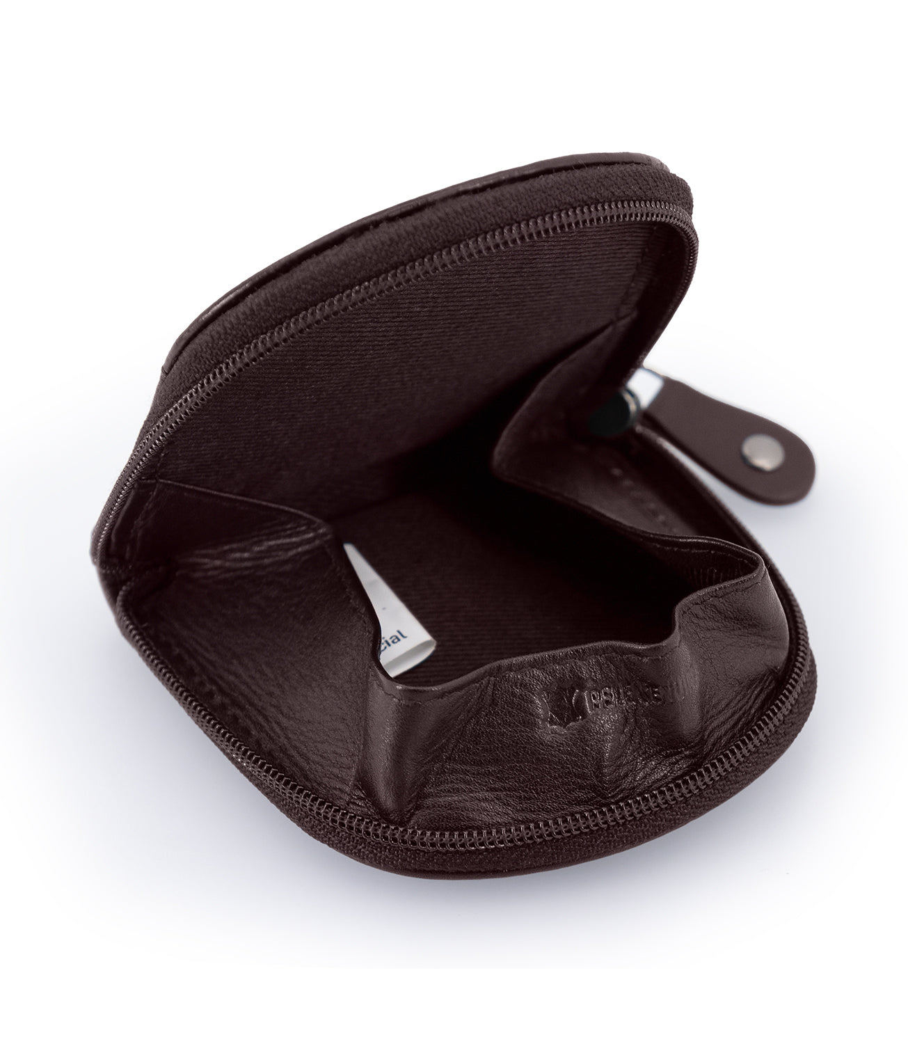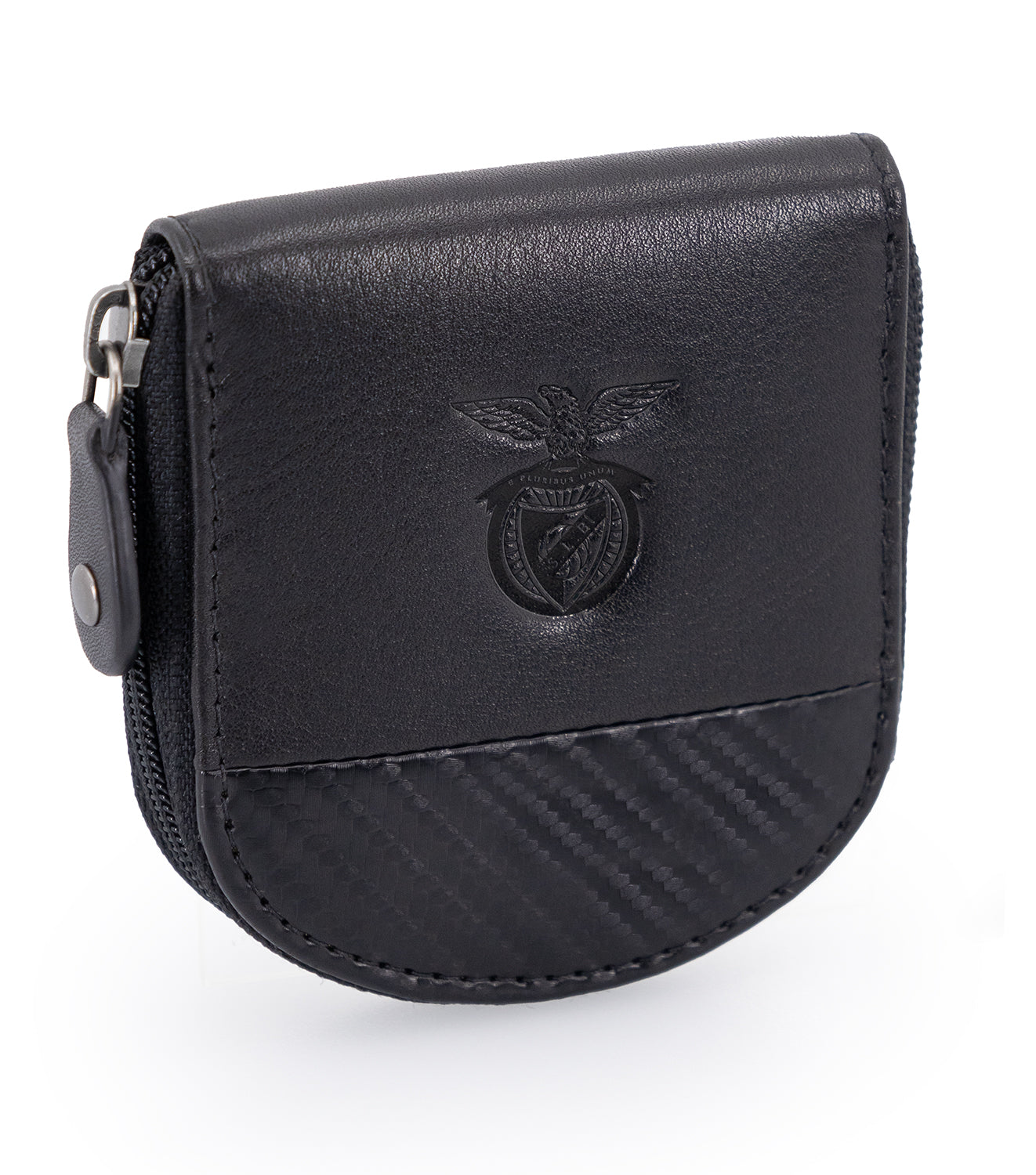 Moedeiro SL Benfica em pele genuína, com detalhes em textura de fibra de carbono. Logotipo gravado.
