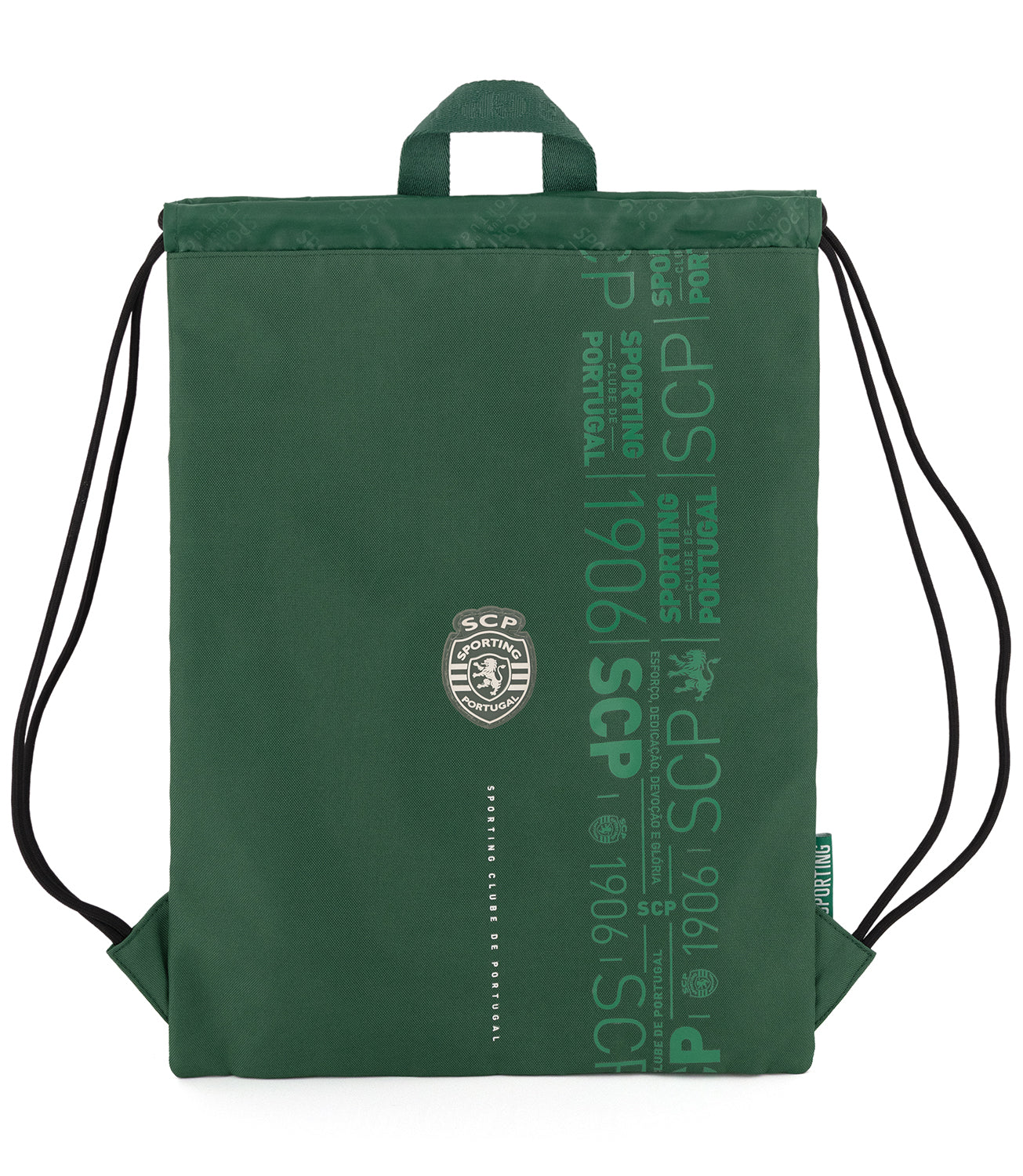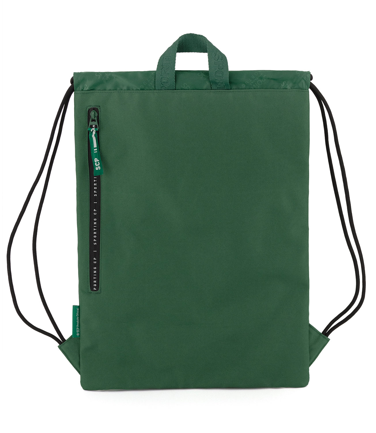 Saco de ginásio/sapatos leve Sporting CP é fabricado em poliéster verde resistente, com um design prático e funcional. Inclui um bolso traseiro com fecho. Alças em cordão grosso e asa em precinta personalizada para transporte e pendurar.