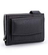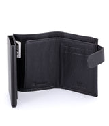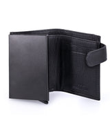 Ranhuras para cartões, com porta-cartões ejetor de alumínio amovível. Proteção RDIF. Divisória para notas.